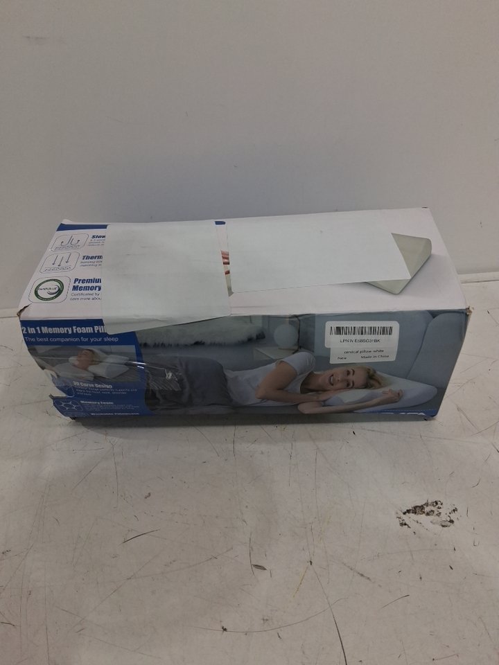 HOMCA 2-IN-1 Ergonomic Memory Foam Pillow for Side Back Stomach Sleepers - 15.7"x 23.6" - White/Grey - (model: PL02)