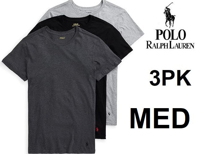 3pk men's polo ralph lauren classic fit crew neck cotton t-shirts - medium - grey/dark grey/black