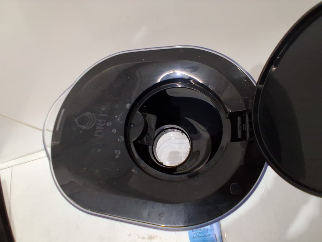 there is some hard water reside around the lid and inside. the filter is missing, but can be replaced.