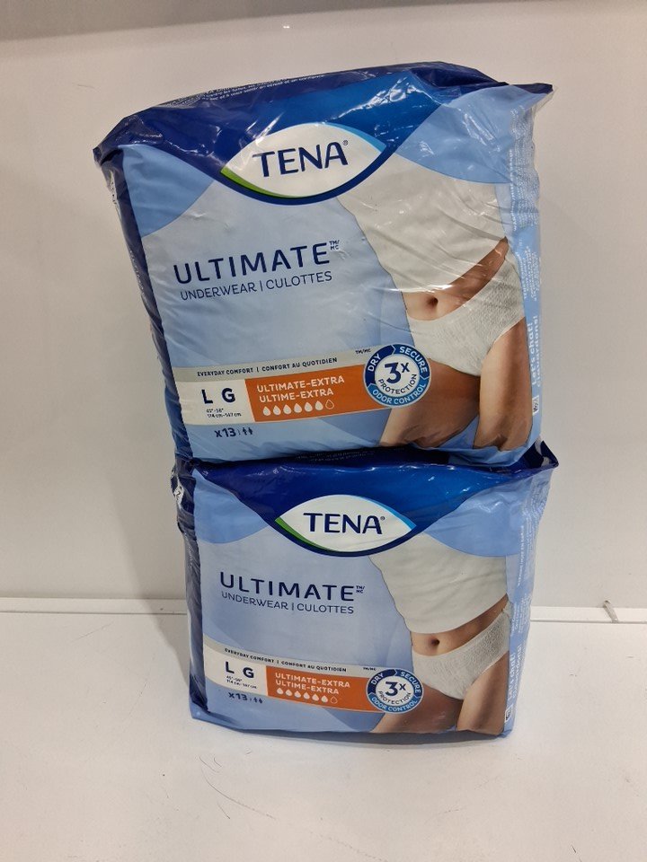 2 (13pk) adults UNISEX TENA ULTIMATE 3X EXTRA DRY & ODOR PROTECTION UNDERWEAR - LARGE (45" - 58") (MODEL: 072323)