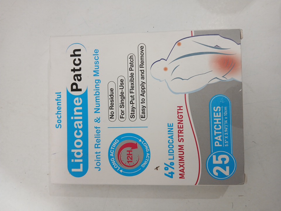 25PK Sochenful 4% Lidocaine Patches - Maximum Strength, Pain Patches for Shoulder, Joints & Muscle