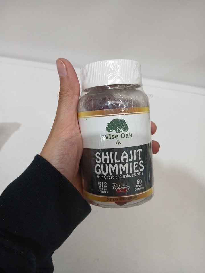 (60 gummies) wise oaks shilajit gummies with chaga and ashwagandha dietary supplement - cherry flavour -