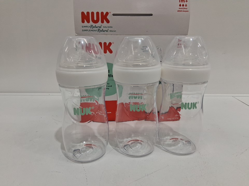 3 NUK simply natural bottle with safetemp - 9oz - White/clear
