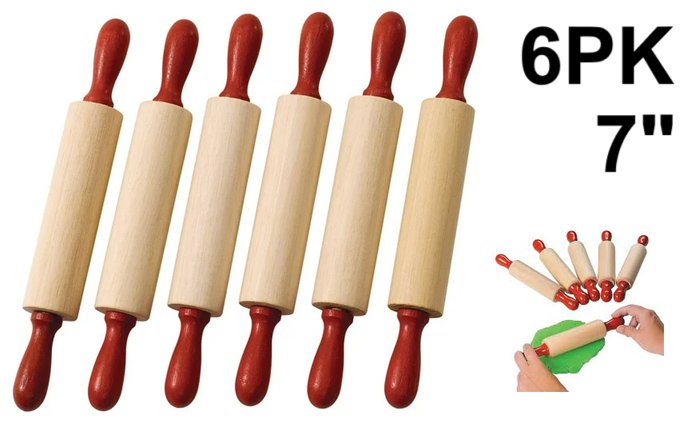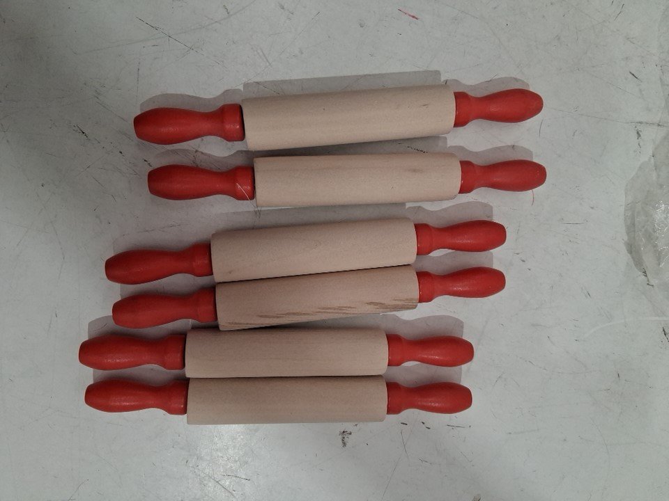 6PK Colorations Natural Wood Rolling Pins 7" - red/wooden
