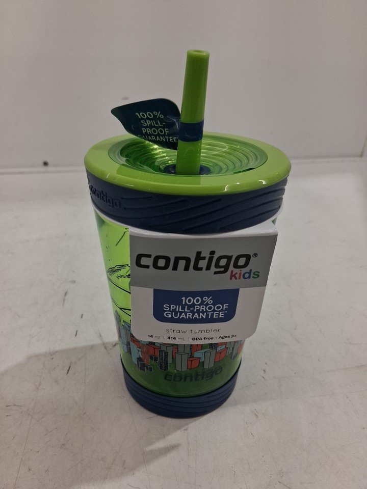 CONTIGO KIDSW SPILL-PROOF TRITAN STRAW TUMBLER - 14oz - GRANNY SMITH WITH FLYING HEROS
