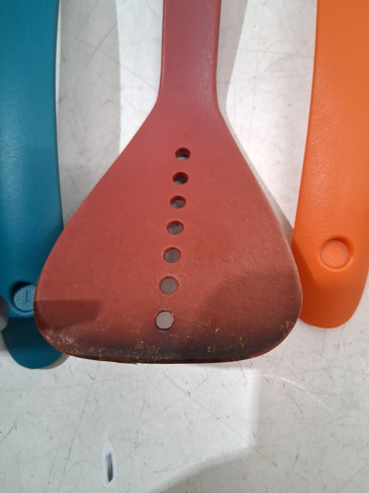 note the utensils do have signs of previous use but the red utensil is significantly used