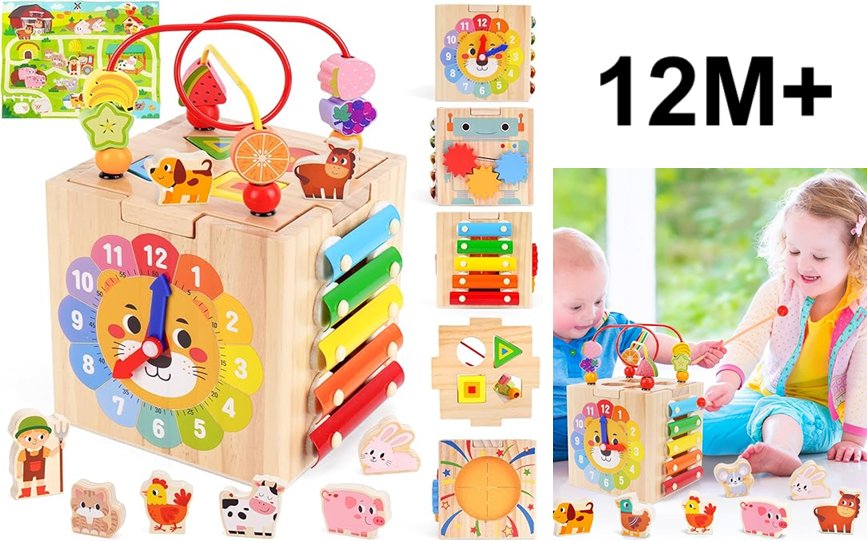 TODDLER ATOYUS MONTESSORI WOODEN ACTIVITY CUBE TOY - 12 MONTHS+