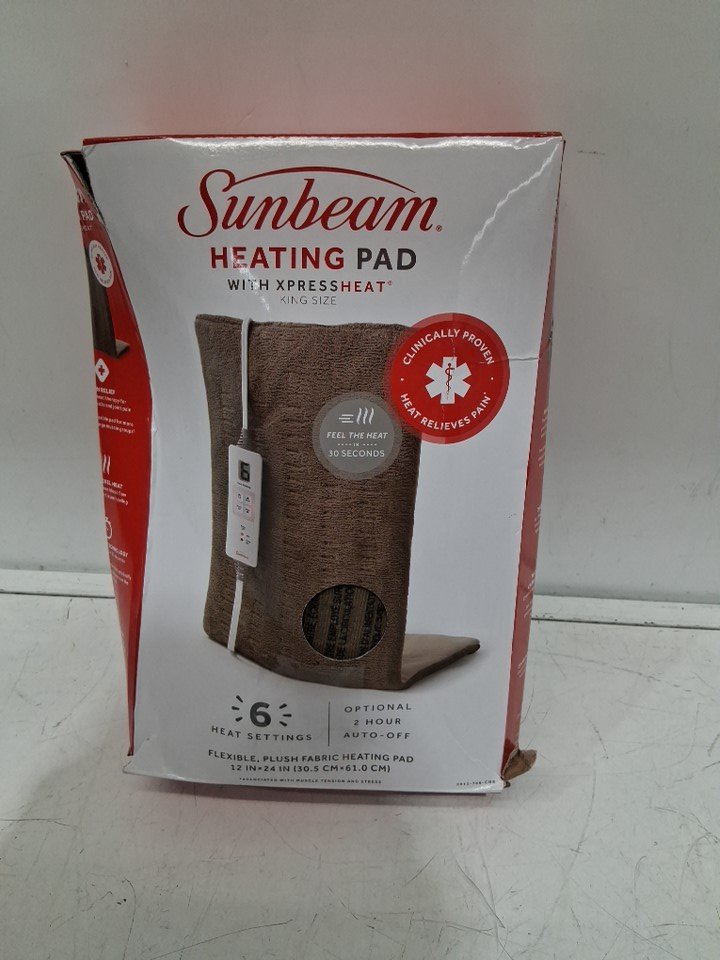 SUNBEAM XPRESSHEAT 6-SETTING PLUSH HEATING PAD - KING SIZE (12" X 24") - BROWN (MODEL: 2013-760-CNR)
