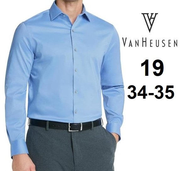 men's van heusen big fit wrinkle free Flex Collar dress shirt - 19/34-35 - cameo blue