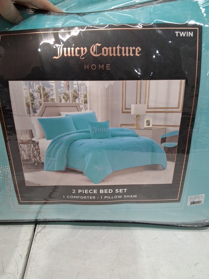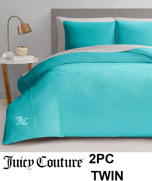 2pc juicy couture Solid Velour Solid Color Microfiber Comforter Set - twin - Blue Crush