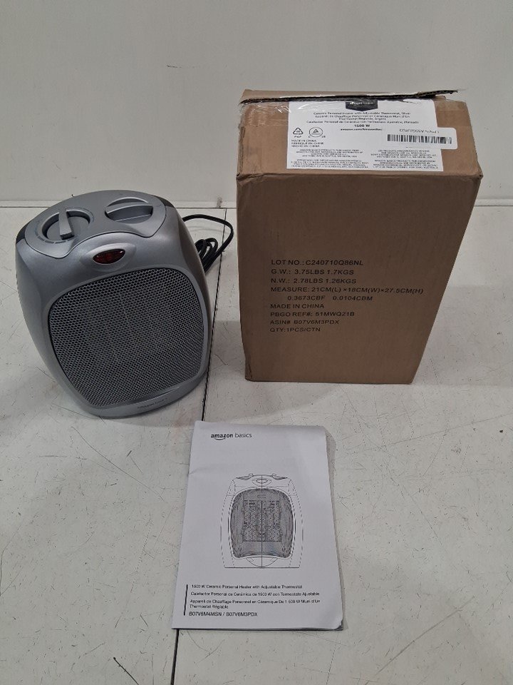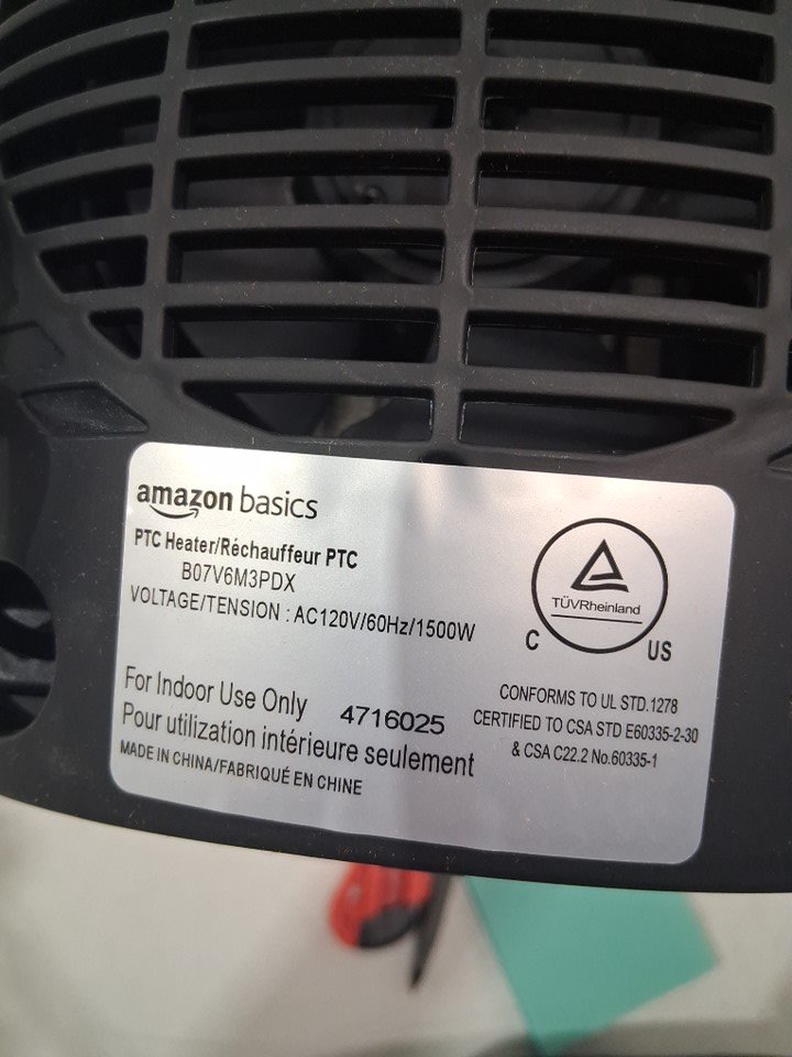 amazon basics indoor ceramic space heater - 1500w - silver black (model: b07v6m3pdx)