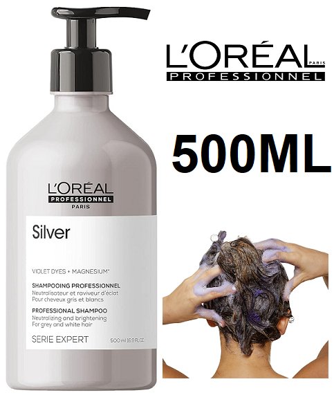 l'oreal professionnel paris silver professional purple shampoo - neutralizing and brightening for grey and white hair - 500ml