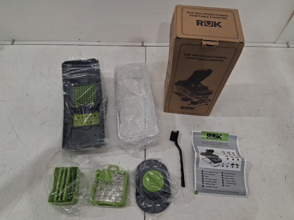 RüK 10-in-1 6-Blade Vegetable Chopper with 1.5l Container - GREY/GREEN (‎RY-EVC01)