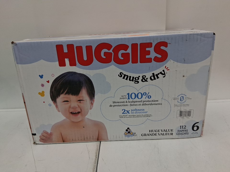 112pk HUGGIES SNUG AND DRY DIAPERS 100% blowout and leakproof protection - size 6