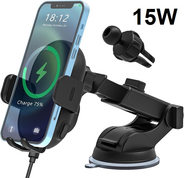 WIRELESS Car Phone Holder/Wireless Charger - 15w - black (MODEL: C178-CA-S)