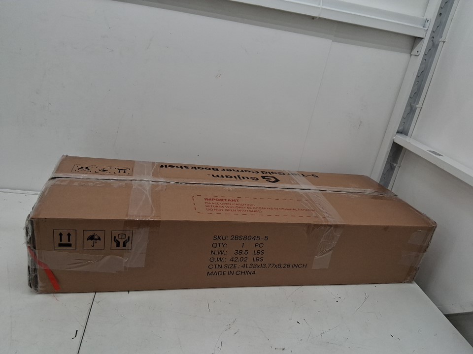 Gujiam 5-Tier Industrial Corner Bookshelf with Durable Metal Frame, Rustic Wood Shelves, Open Shelving Reinforced Crossbar Support and Adjustable Foot Pads - Gold / White (Model: 2BS8045-5)