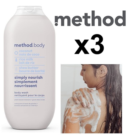 3 Method Body Simply Nourish Body Wash - Coconut, Rice Milk, and Shea Butter- 828ml/each