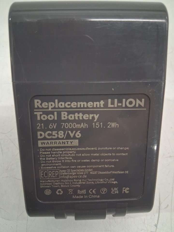 APEX REPLACEMENT BATTERY FOR DYSON V6/DC58 - V6 4.0AH 21.6V LI-ION BATTERY