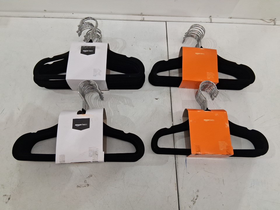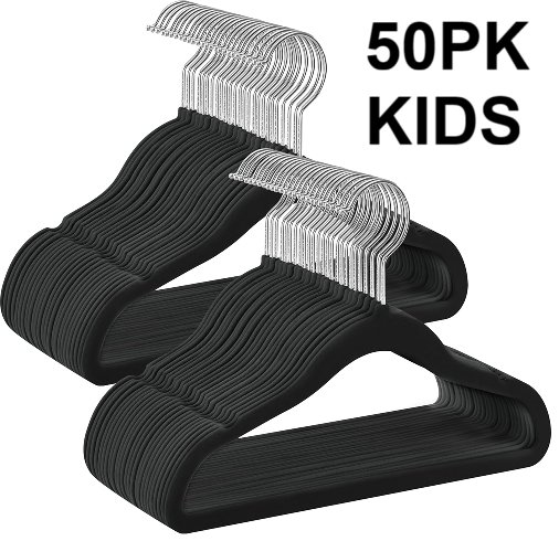 50PK kids AMAZON BASICS VELVET NON-SLIP CLOTHES HANGERS - black