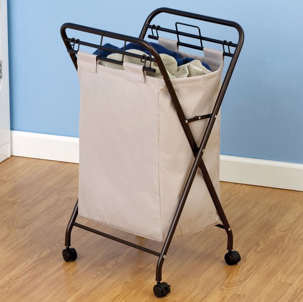 Household Essentials Mobile Rectangular Laundry Hamper with Removable Polyester Bag - 19" x 17" x 33" - Antique Bronze (model: HH7172)