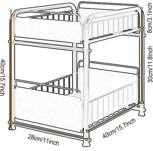 KKC under sink organizer- 2 Tier Rustproof Pull-out, Height Adjustable 14"x 11" x15.75"- metal - white