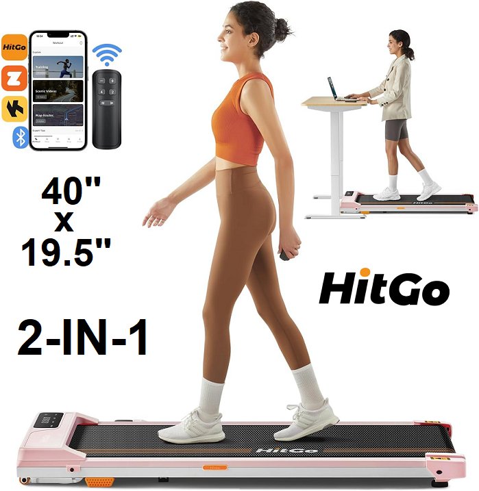 hitgo 2-in-1 portable Walking Pad with Remote Control LED Display App - 2.5HP Super-Quiet for Walking Jogging - 40" x 19.5" - pink (model: w1)