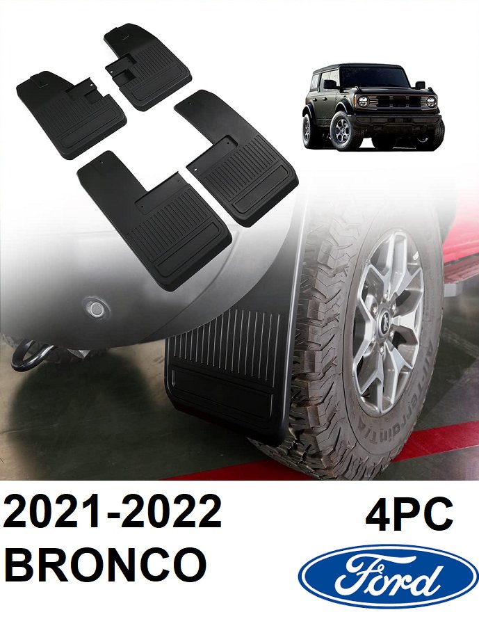 4pc muslogy easy release no drill mud flaps for 2021 to 20222 for bronco - black (model: br-mf2)