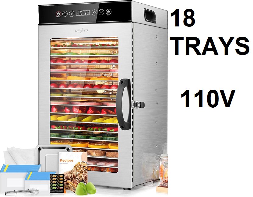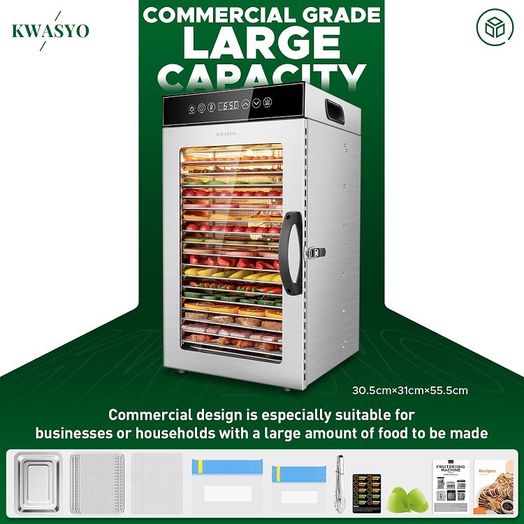 Kwasyo food dehydrator machine stainless steel dual fan 360° drying 18 Layers - 30-90°C - 110V - Silver/black (model: LT-25)