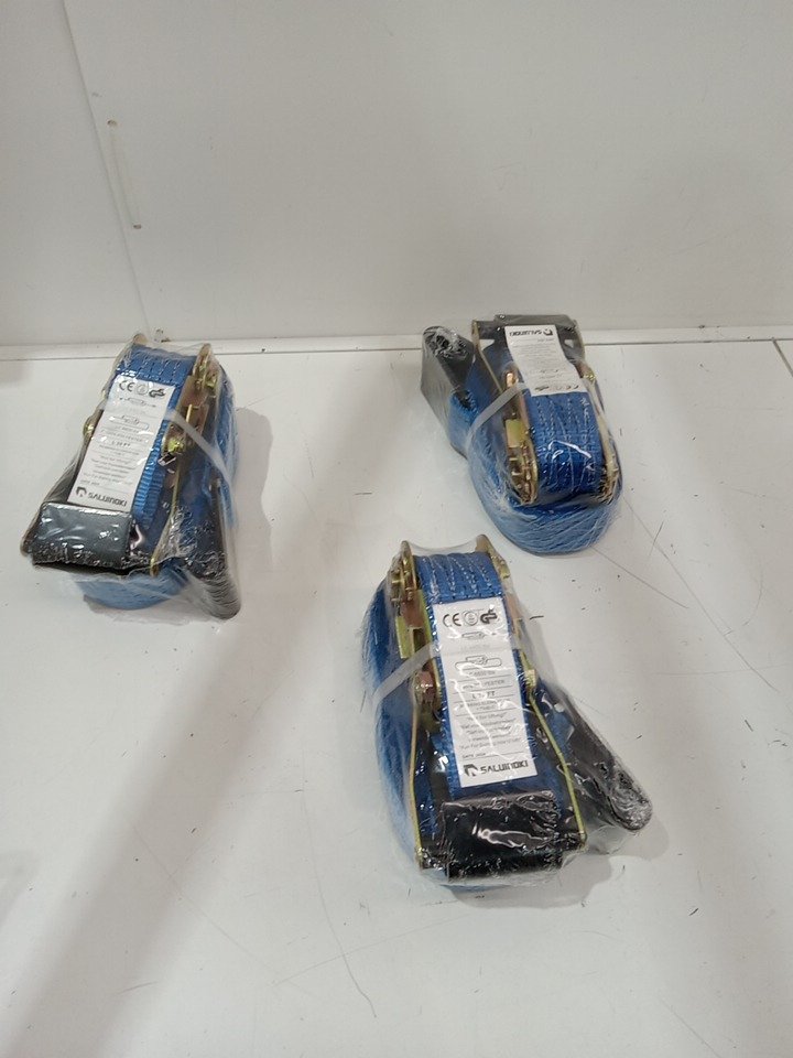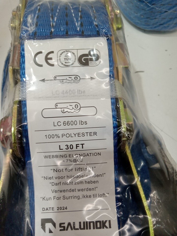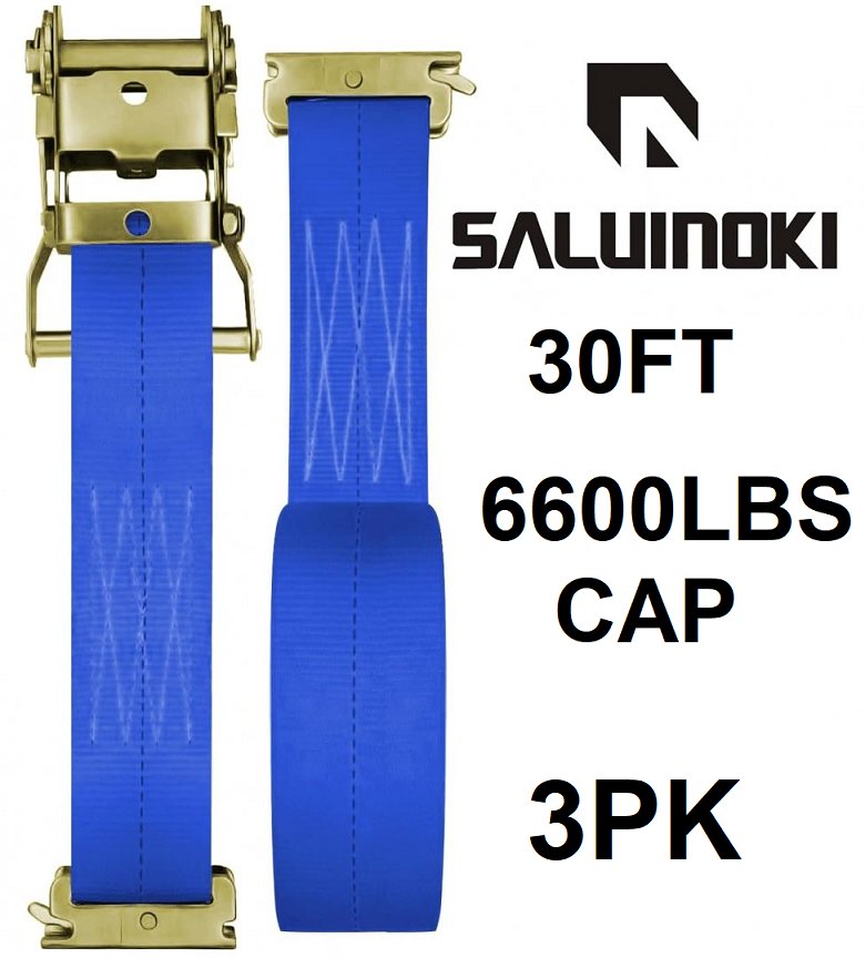 3pk Saluinoki heavy duty E-track ratchet strap - 2" x 30FT - 6600LBS working load - Blue