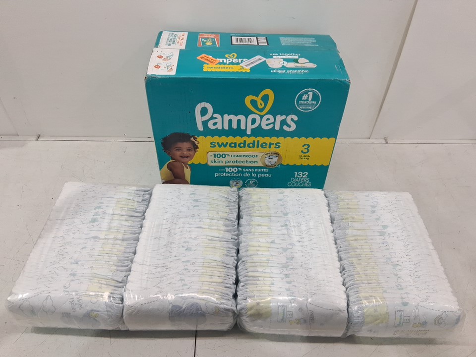 132PK PAMPERS SWADDLERS DIAPERS - SIZE 3
