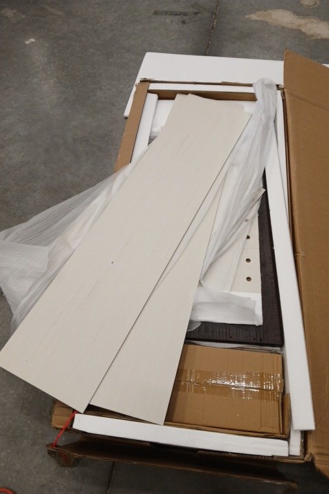 ‎jiteentarou Folding Sliding Barn Door with 2 drawers and LED lights - 73" - antique white/brown (model: DJ0722BR-WHT)