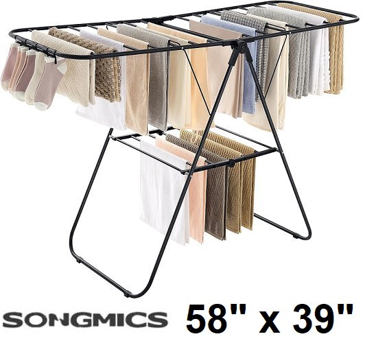 SONGMICS Free-Standing Clothes Drying Rack - 58" x 39" - black (MODEL:‎ LLR052)