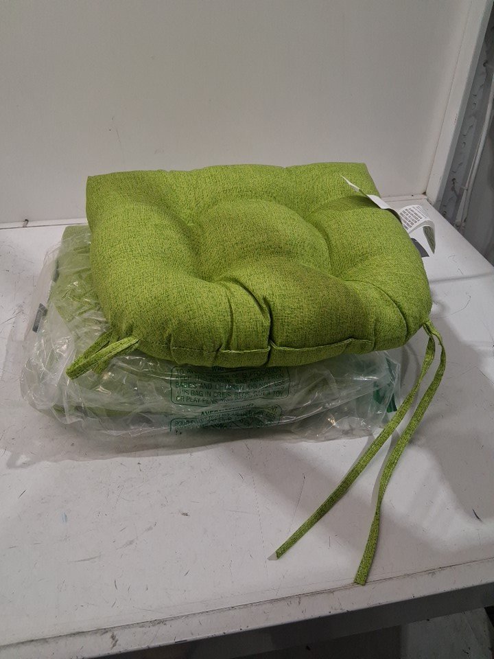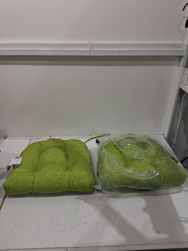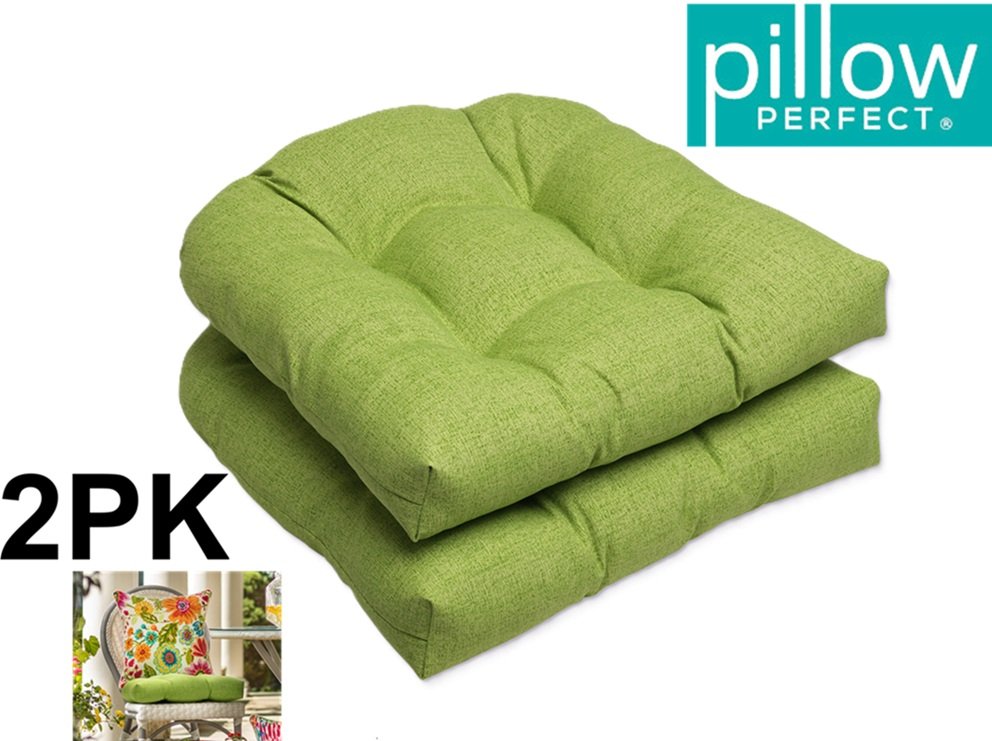 2pk pillow perfect fade-resistant outdoor/indoor wicker seat cushions - 19" x 19" X 5" - linen lime/green