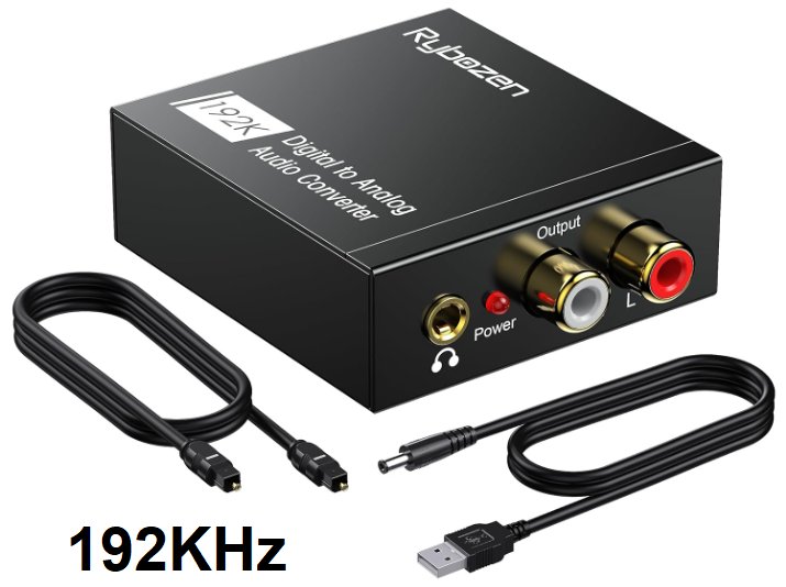 DAC 192KHz Digital to Analog Audio Converter with Optical Coaxial Cable - black