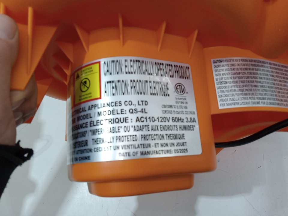 Costway Inflatable Air Blower Pump for Bounce Houses, Inflatable Castles, Waterslides & Outdoor Inflatables – Heavy-Duty Electric Pump Blower with Power Cord - 450W - Orange (Model:QS-4L)