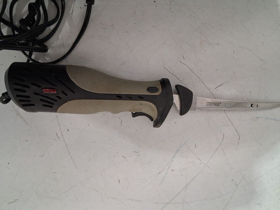 Tested for power, working. Signes of light use, dirt/debris on knife. See photos