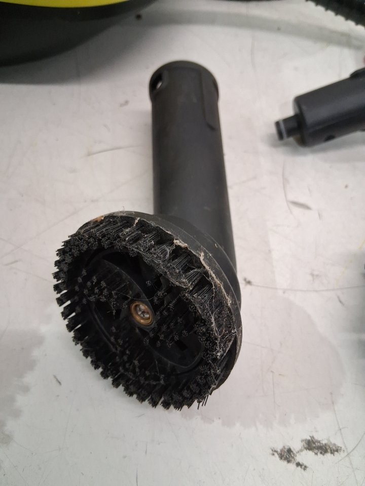 Tested for power. Please note the cleaner shows signs of previous use with debris/smudges on one of the brushes, see photos.