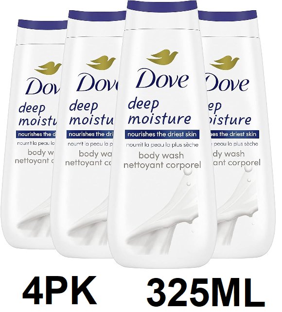 4PK Dove Deep Moisture Body Wash for nourishing the driest skin - 325ml each