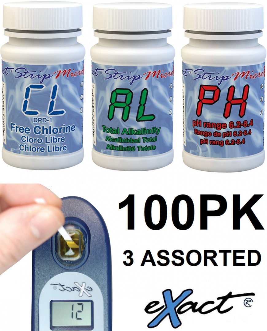 3 ASSORTED 100PK exact strip micro tests - for exct photometers - free chlorine (cl), ph, Total Alkalinity (ak)