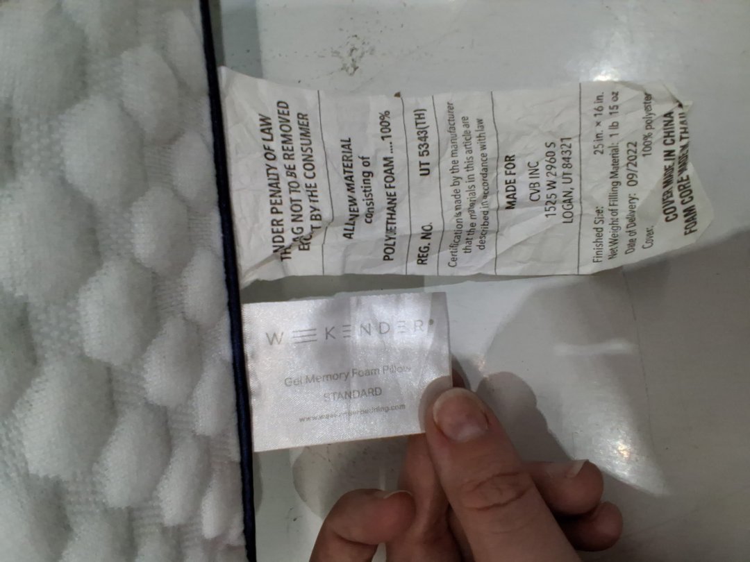 weekender ventilated gel memory foam pillow with washable cover - 16" x 25" (standard) - white (model: wkss30gf)