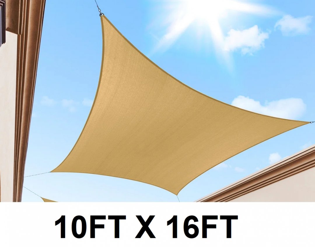 Royal Shade Rectangle Shade Sail With Hardware Kit - 10FT X 16FT - SAND