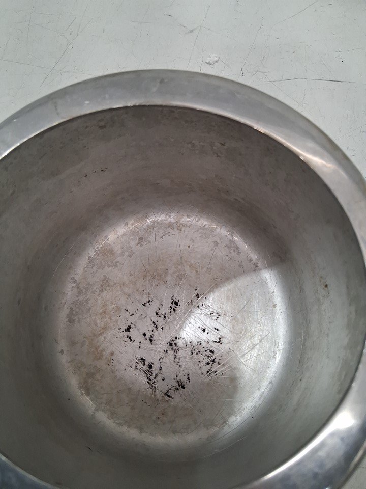 please note there is significant scratch marks on the inside of the pot as well as water marks all throughout. As well some burn marks inside and on the bottom on the pot from previous use