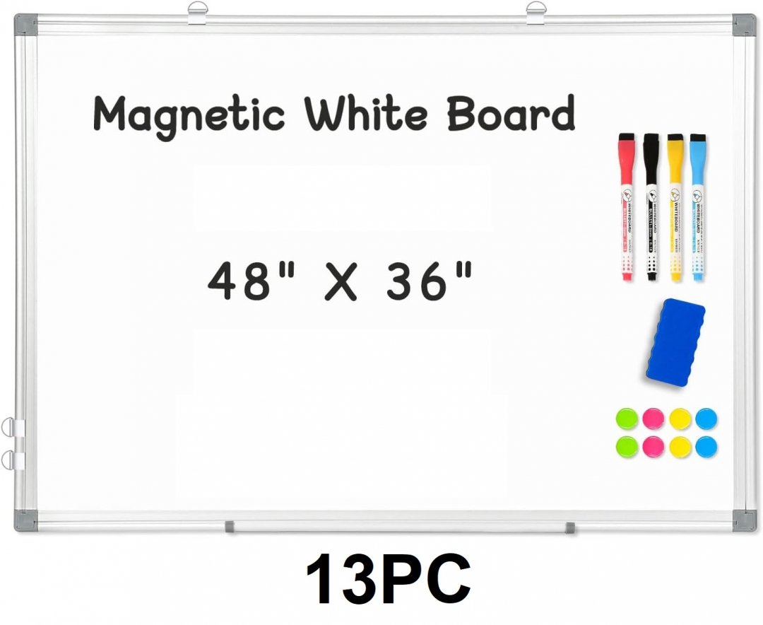13PC AMUSIGHT Double-Sided Magnetic Whiteboard WITH MARKERS, MAGNETS, MOVABLE TRAY - 48" x 36" - white