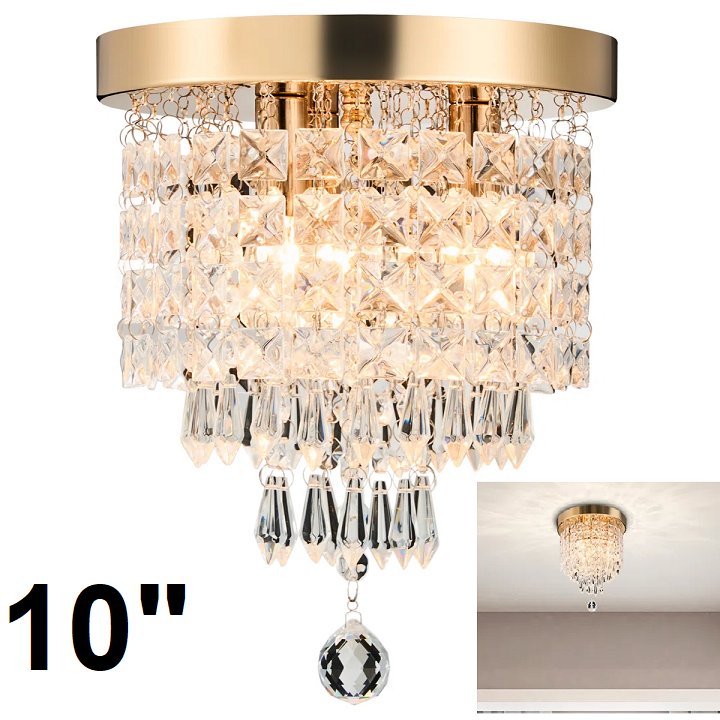 Mercer41 Cheyan 3-Light Crystal Chandelier Flush Mount Ceiling Light - 10" - gold