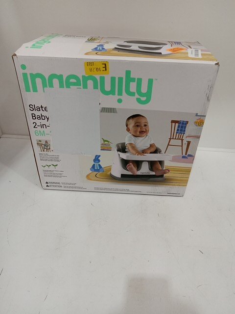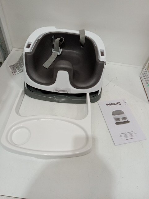 INGENUITY BABY BASE 2-IN-1 BOOSTER SEAT WITH FOOD & DRINK TRAY - 50LBS CAPACITY - WHITE/SLATE GREY (MODEL: 11576)