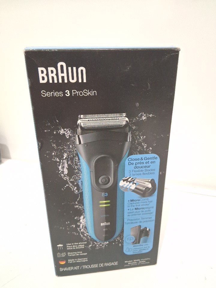 Braun Series S3 ProSkin Men's Electric Foil Shaver / Rechargeable Electric Razor, Wet & Dry - Blue (model: 3040s 5416).