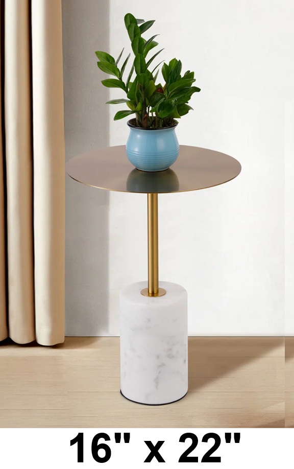 Wrought Studio Jaiquez Circulo Marble Base Side Table - 16" x 22" - White/Gold