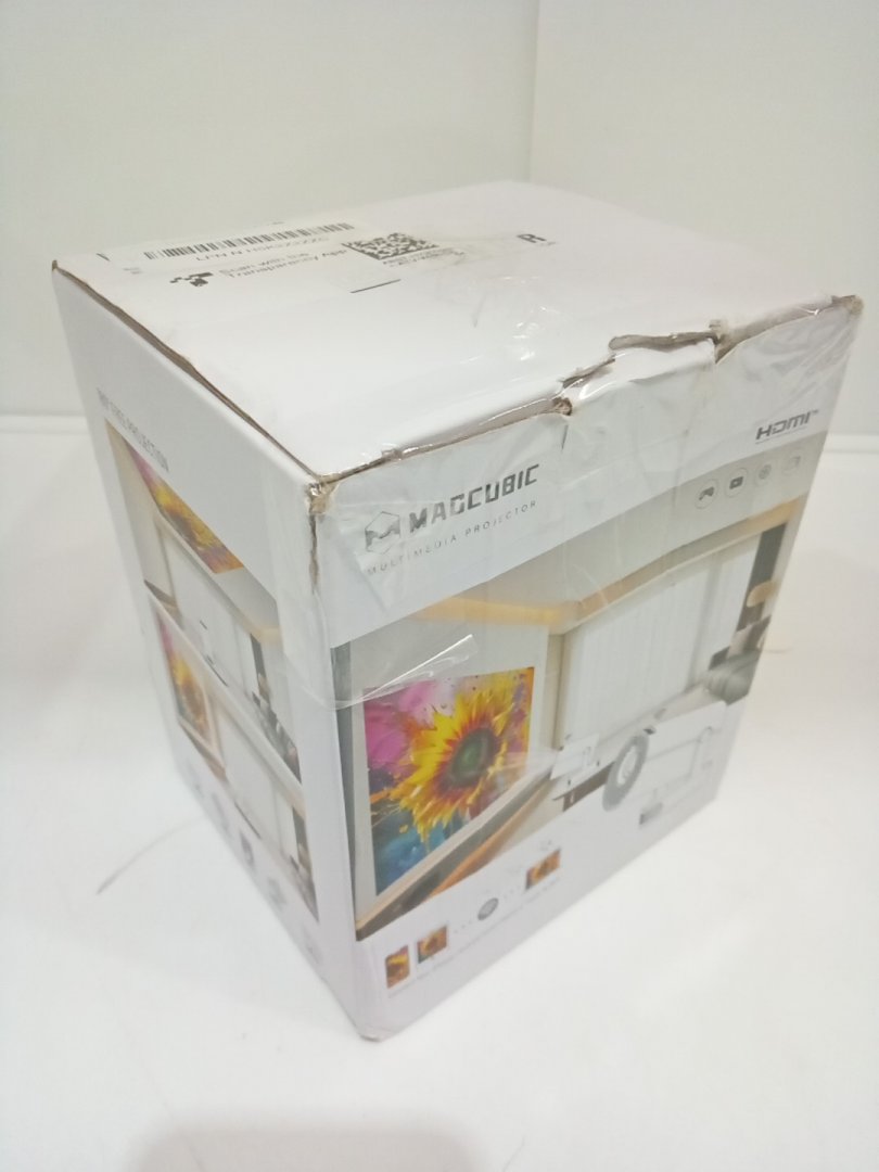 MAGCUBIC PORTABLE SMART PROJECTOR WITH BUILT IN SPEAKER, BLUETOOTH, WIFI, & AUTO KEYSTONE CORRECTION - WHITE (MODEL: HY300Pro+)
