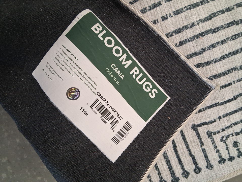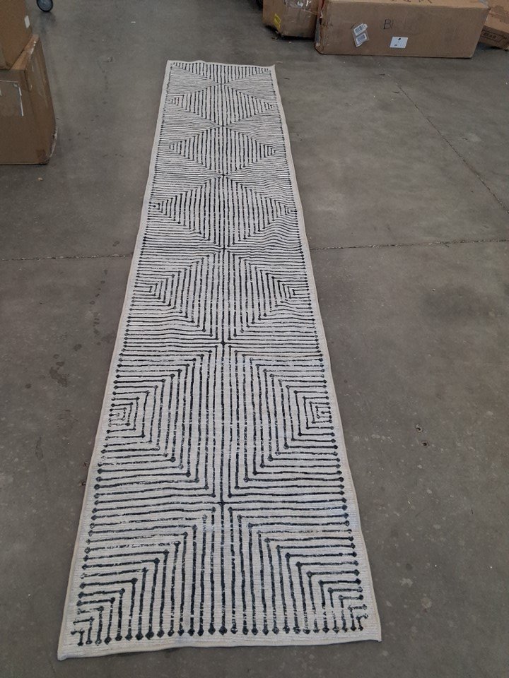 Bloom rugs caria Washable Non-Slip for Entryway, Hallway, Bathroom/kitchen - 12ft x 2ft 6" - ivory/black striped(model: CARIA22-IVBK2612)