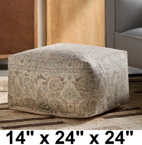 Surya Kalina Pouf - 14" x 24" x 24" - Beige (Model: KLPF-001)